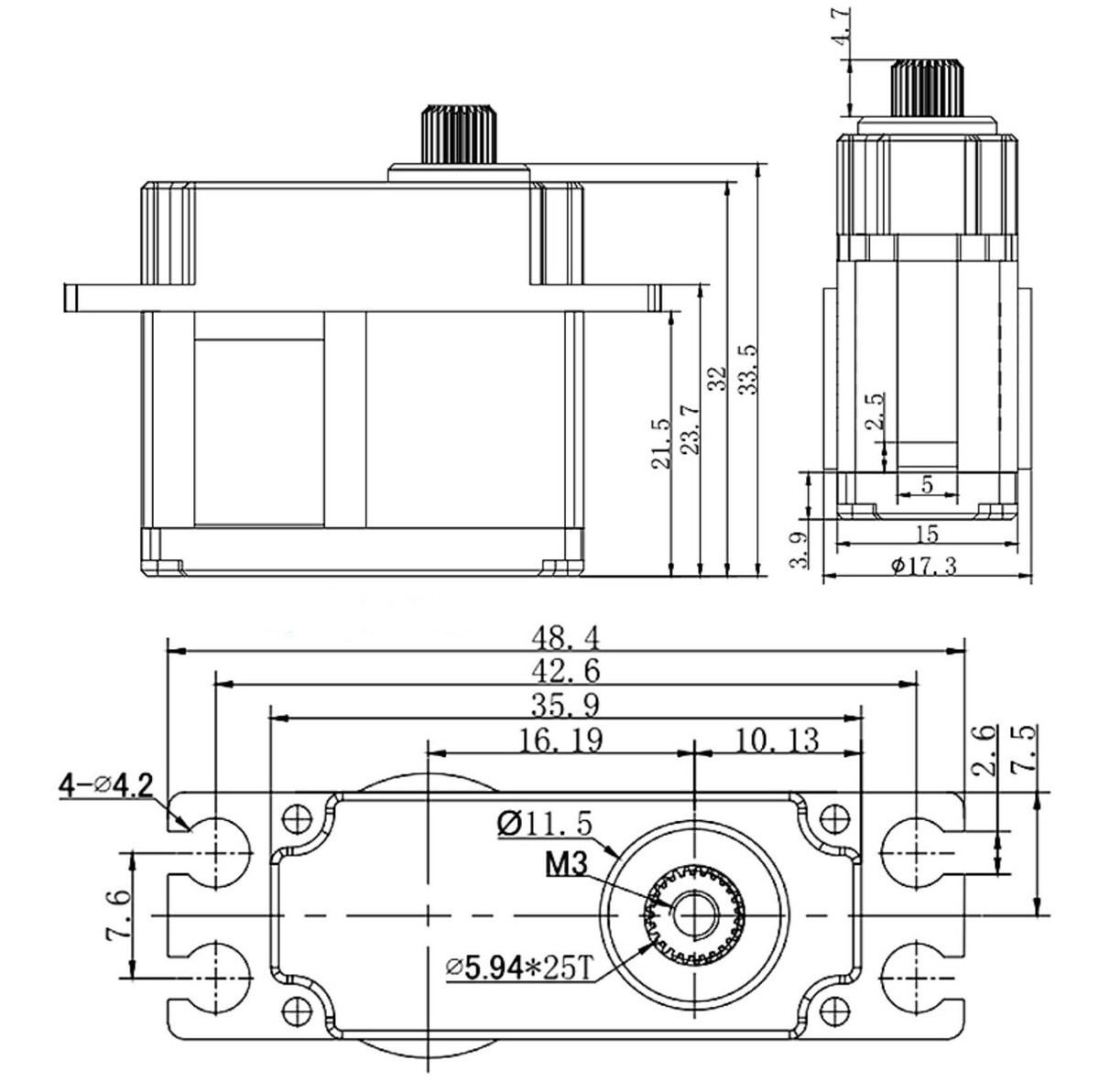 GDW micro & mini combo servo set 3x DS298MG + 1x DS595MG