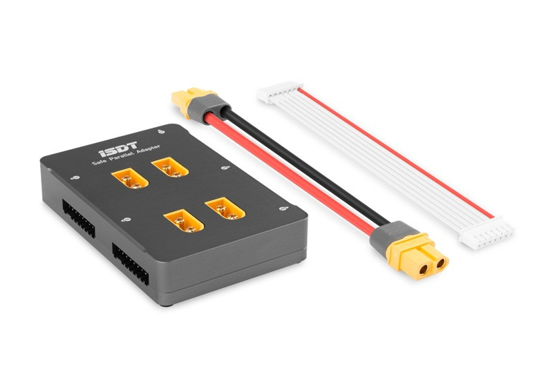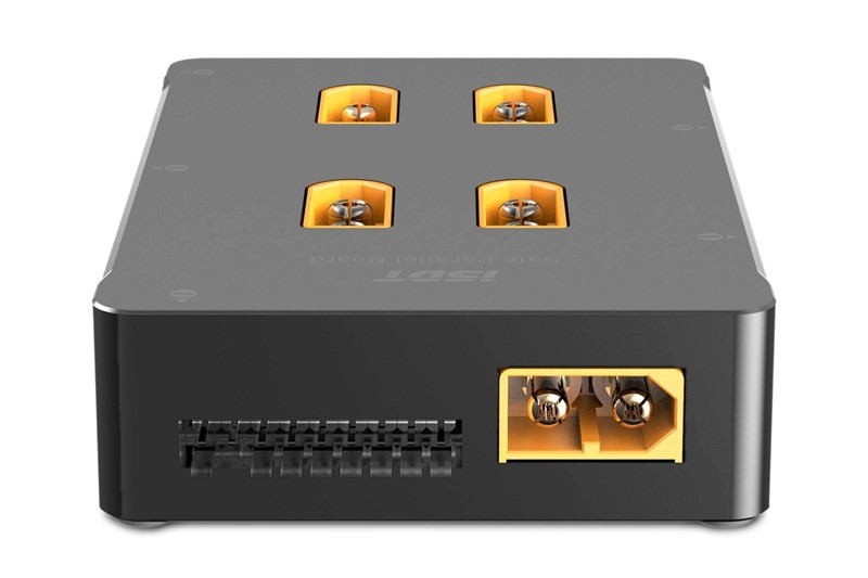 L'adaptateur de charge parallèle iSDT PC-4860 est idéal lorsqu'il s'agit de charger rapidement et simultanément un maximum de batteries. Il est possible de charger simultanément jusqu'à 4x batteries LiXx avec 8 éléments. Le boîtier en aluminium fraisé CNC est extrêmement robuste et de haute qualité. 32 fusibles SMD garantissent que toutes les connexions de l'équilibreur sont protégées entre elles. Jusqu'à 30 A sont possibles par sortie XT60. Au total, 40 ampères peuvent passer par l'entrée. Veuillez noter que seuls des accus avec le même nombre d'éléments peuvent être utilisés !