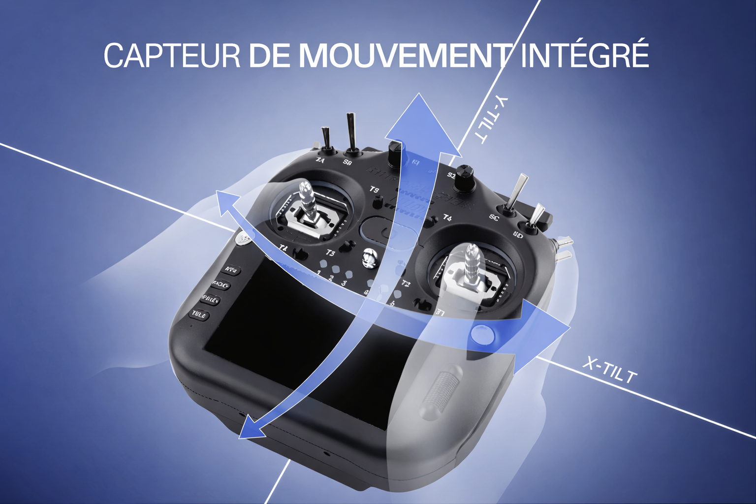 Rétroéclairage automatique : Facilite la lecture de l'écran en intérieur comme en extérieur. Capteur de mouvement intégré : activez des interrupteurs, des caméras panoramiques/inclinables ou recevez des messages télémétriques en inclinant simplement votre radio.